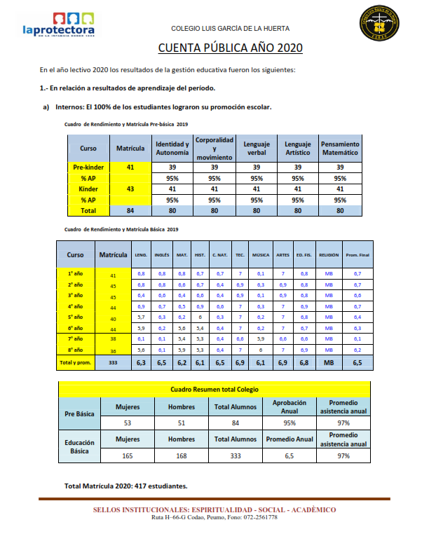 En el año lectivo 2020 los resultados de la gestión educativa fueron los siguientes: 1.-…