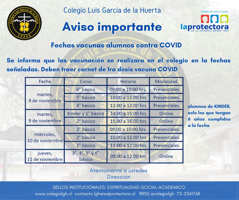 Estimados padres y apoderados, junto con saludar, se informa las fechas de la Vacuna. Está…